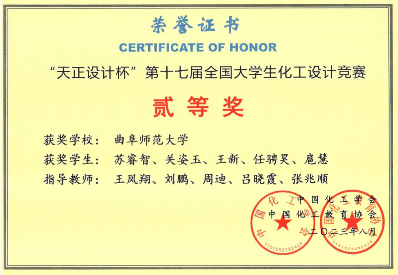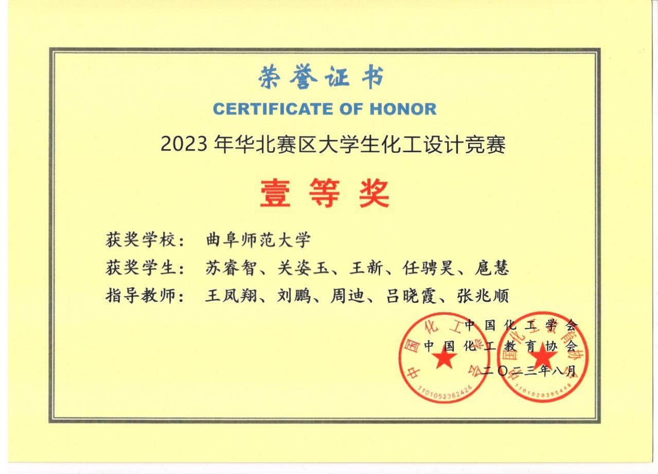 化学工程与工艺专业2020级学生苏睿智、关姿玉、王新、任骋昊、扈慧组成的“腈诚所至”团队(指导教师:王凤翔、刘鹏、周迪、吕晓霞、张兆顺)从432所高校的3391支参赛队伍中脱颖而出,团队凭借出色的发挥和优异的表现获得了全国二等奖和华北赛区一等奖,这是澳博体育