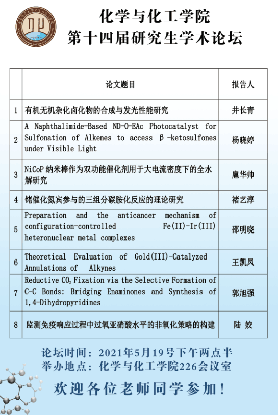 各位老师好:澳博体育 第十四届研究生学术论坛将于今天下午两点半于系楼226举行。欢迎各位老师参加!