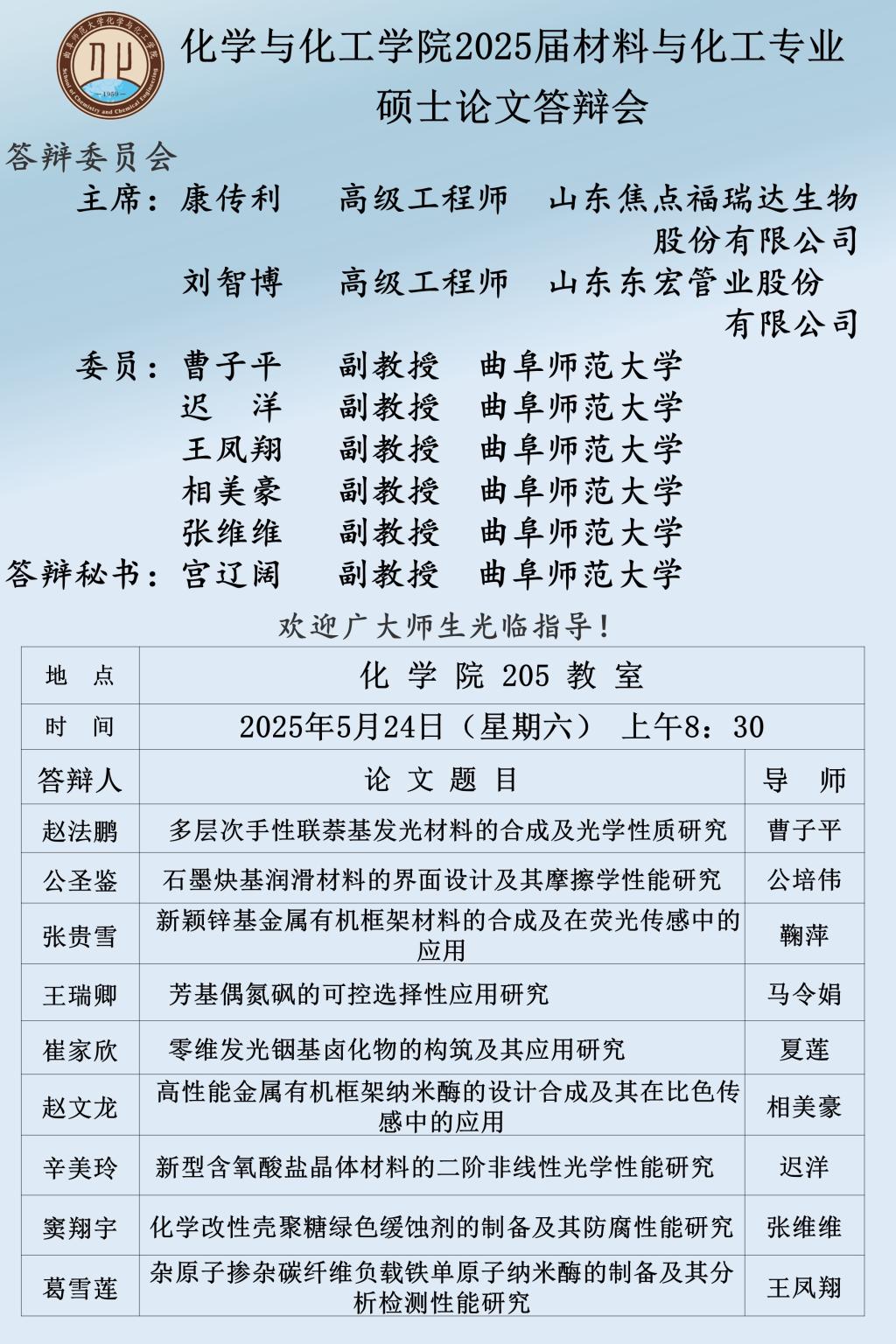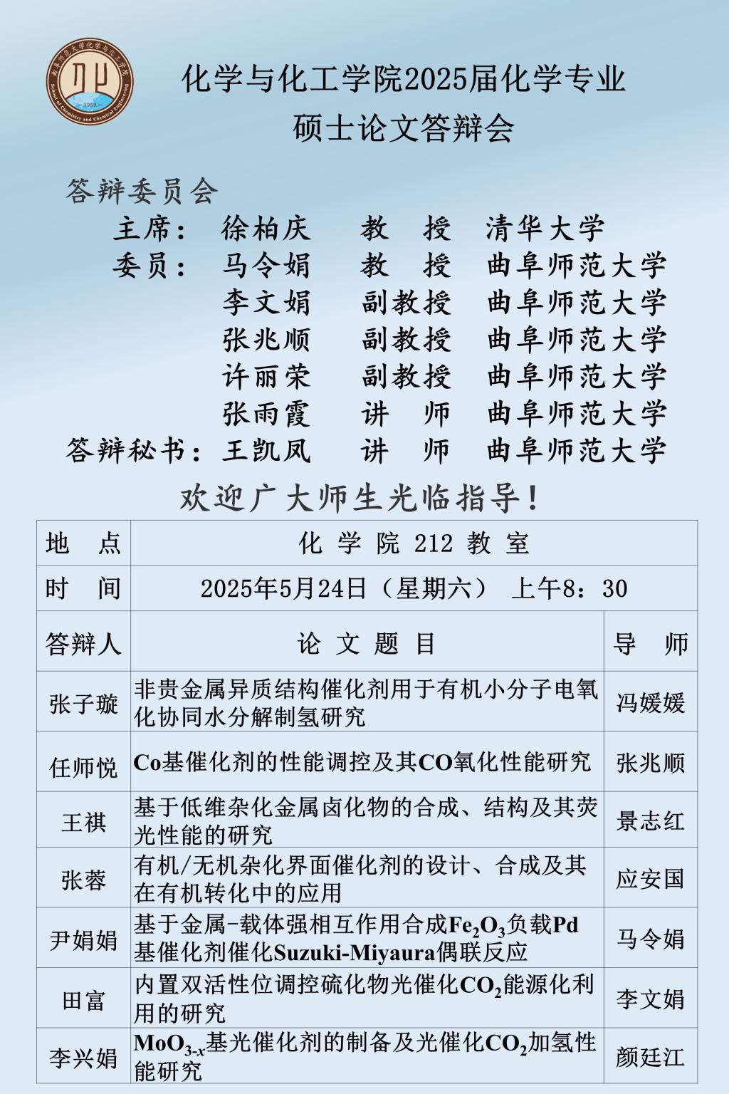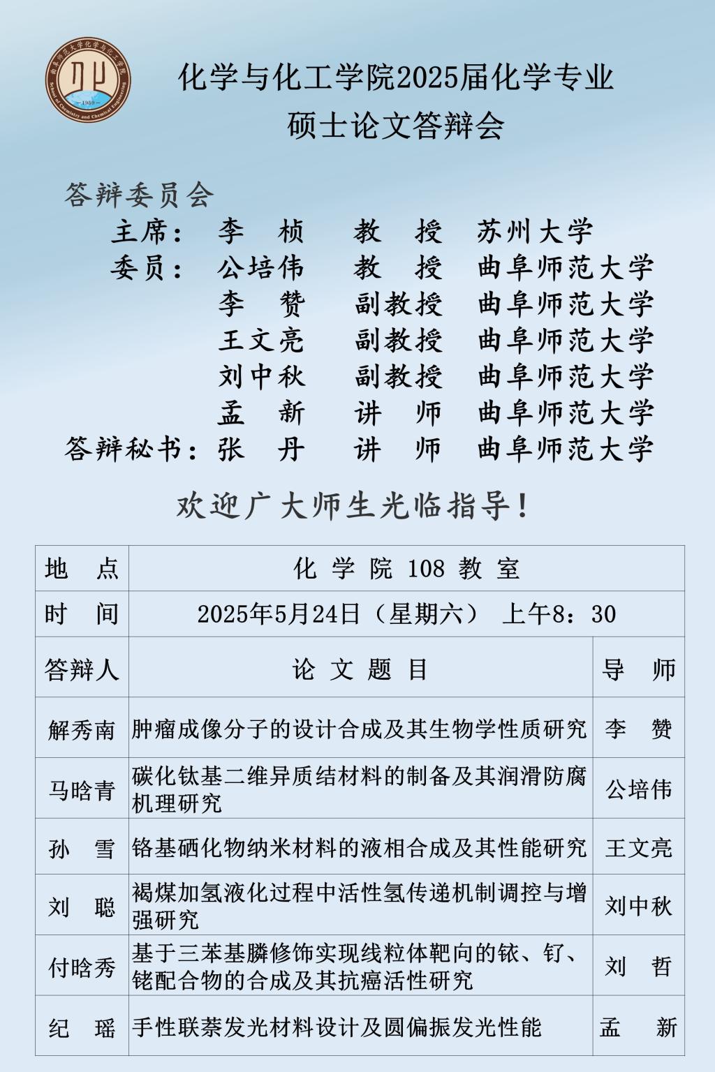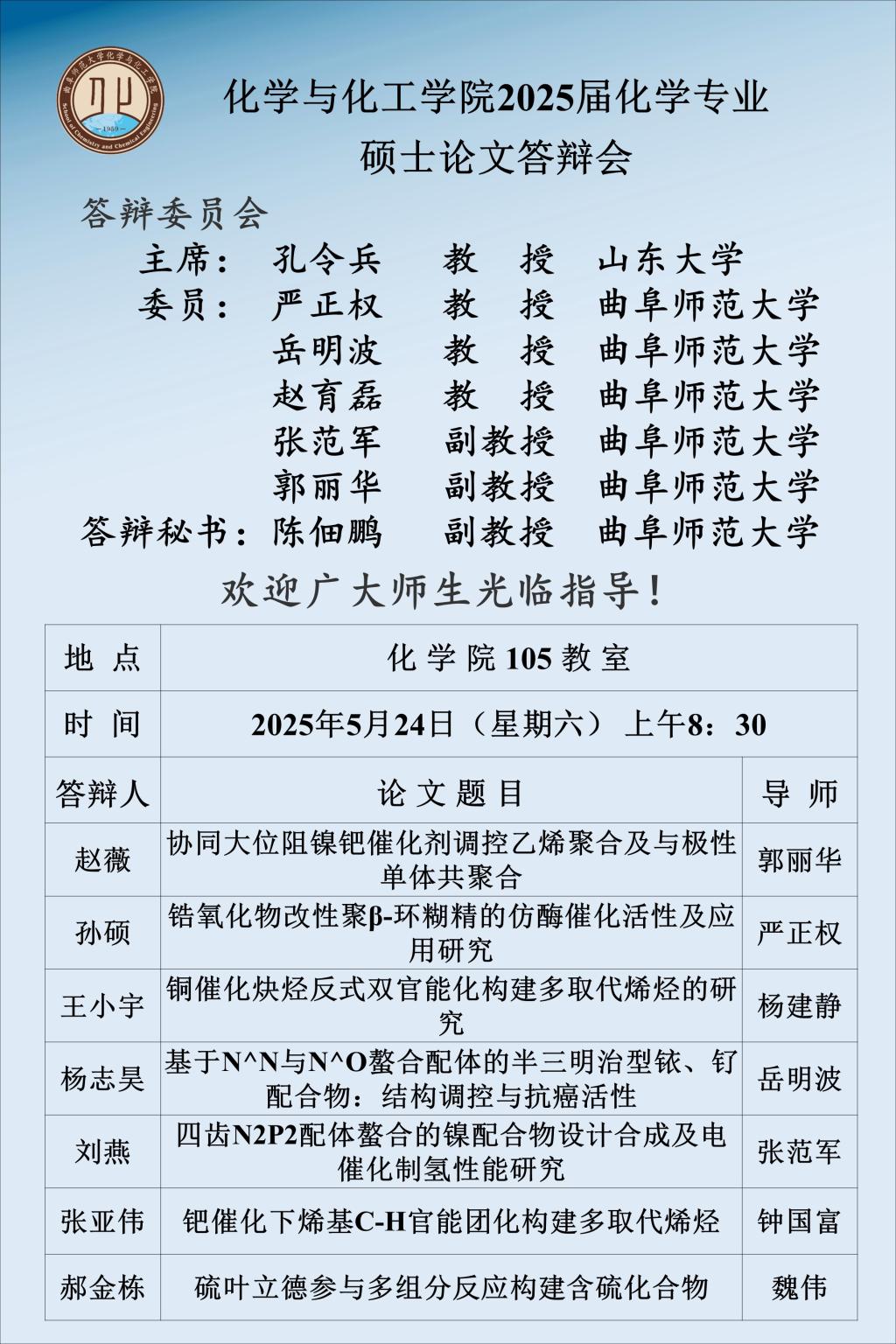 【5月24日】2025届硕士论文答辩会公告