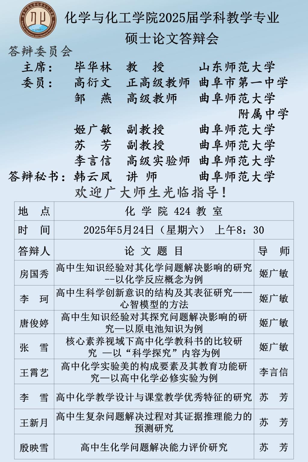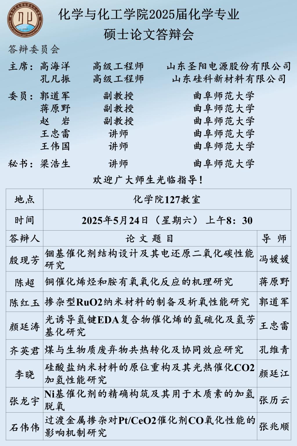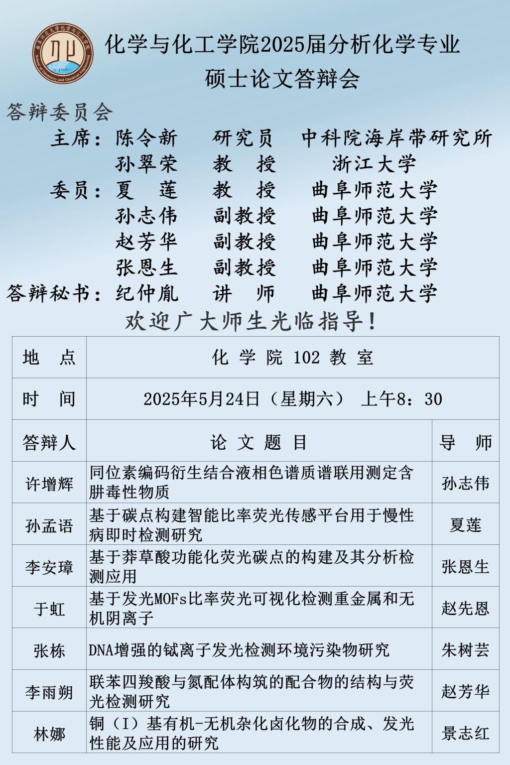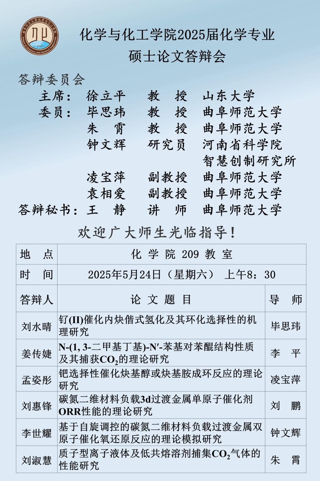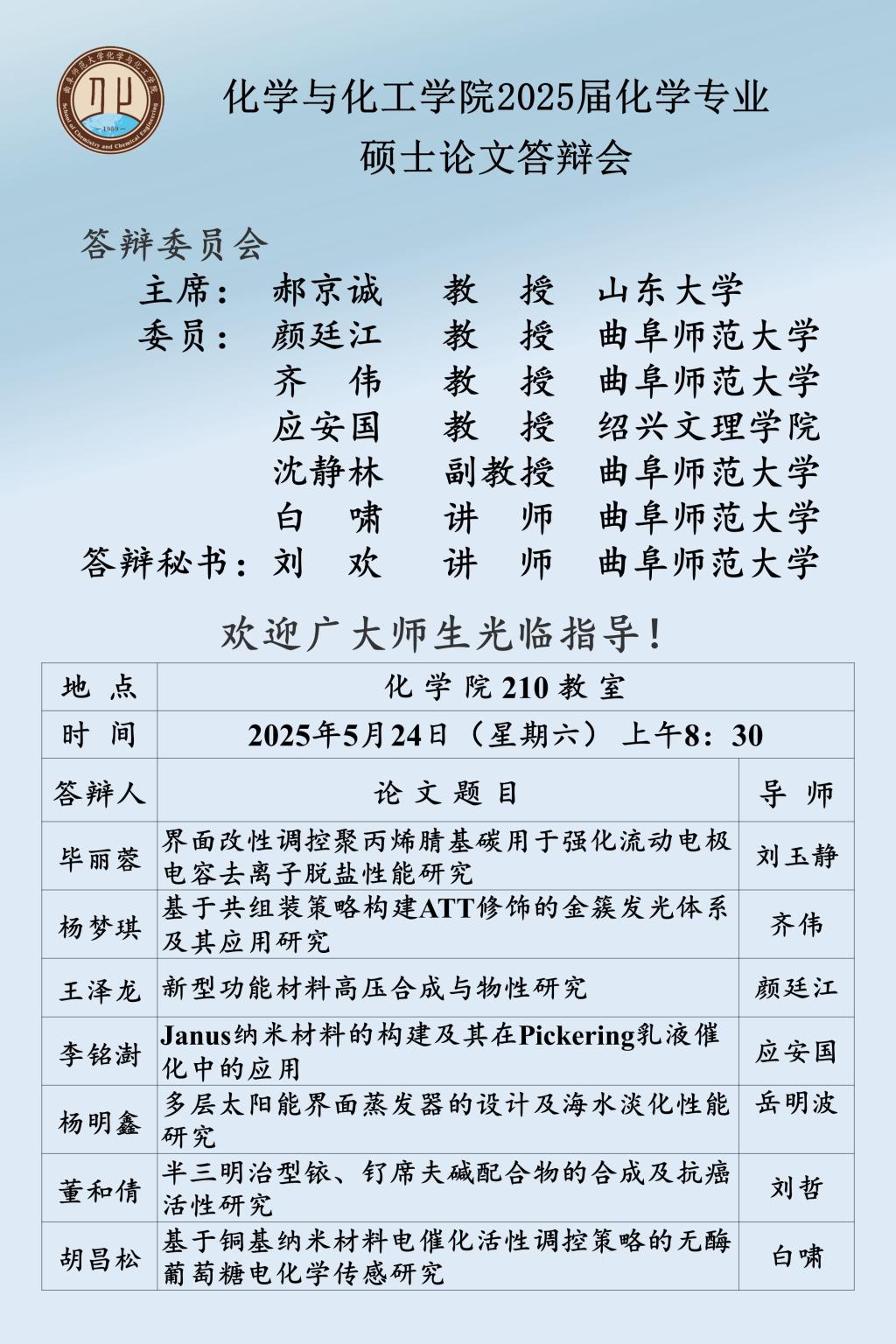 【5月24日】2025届硕士论文答辩会公告