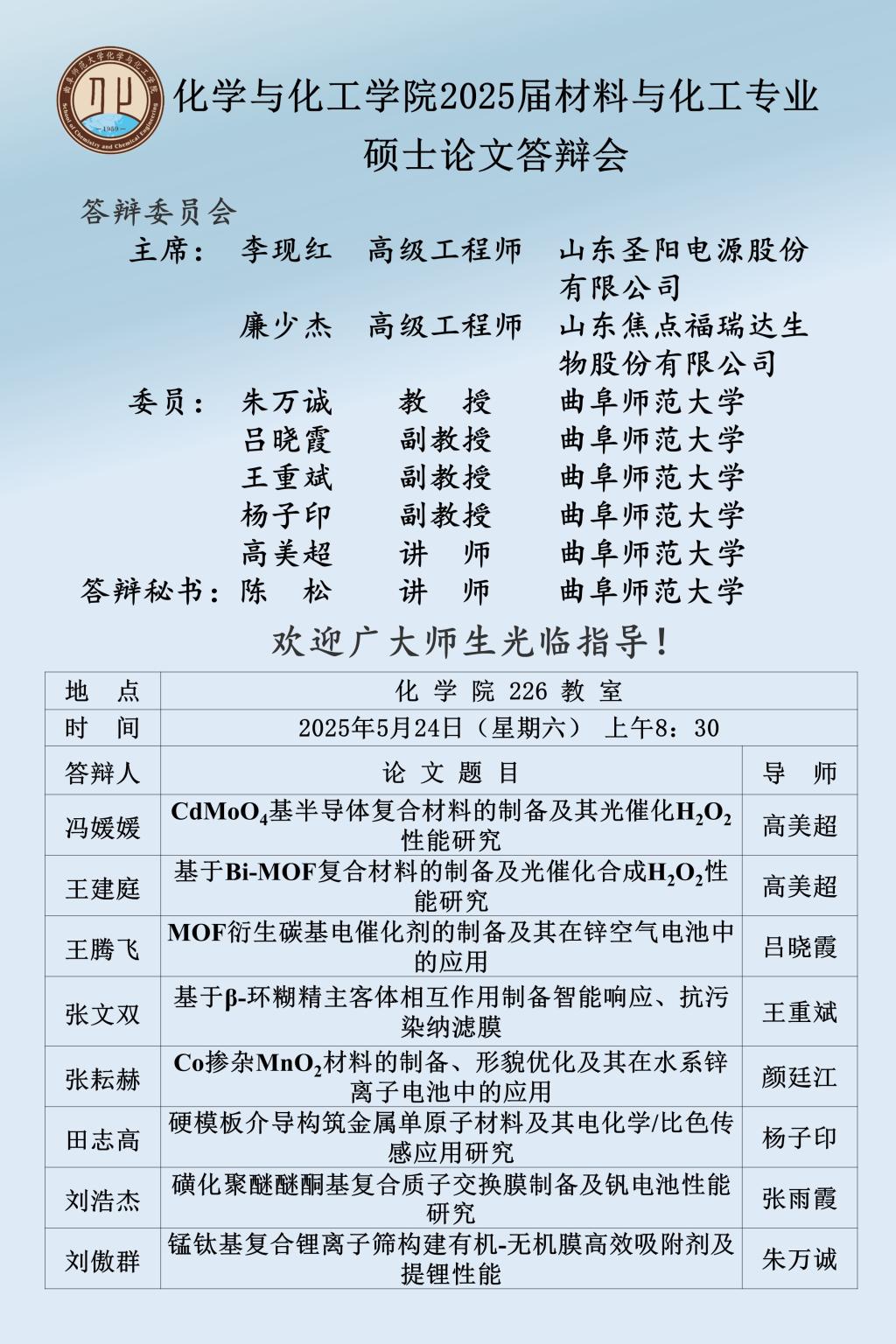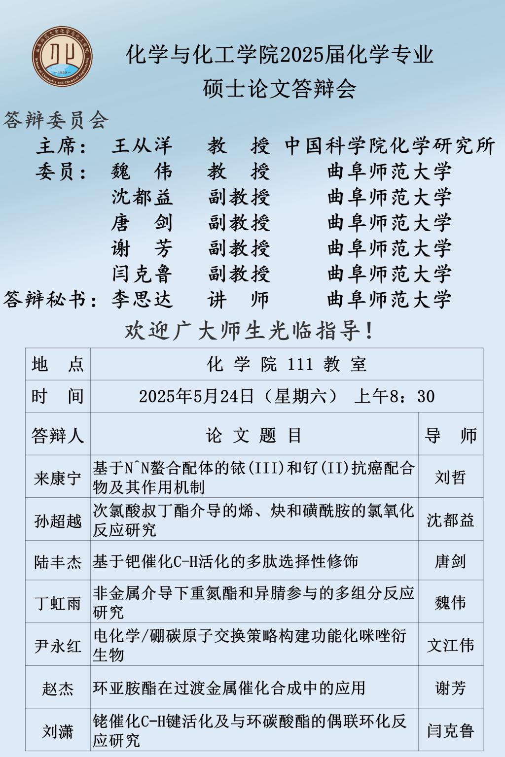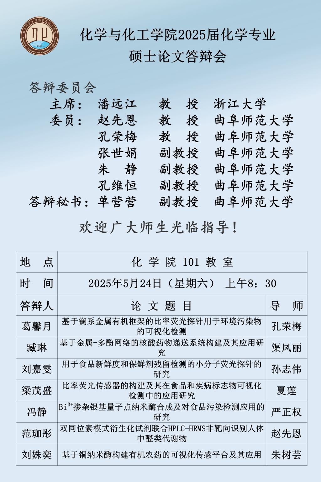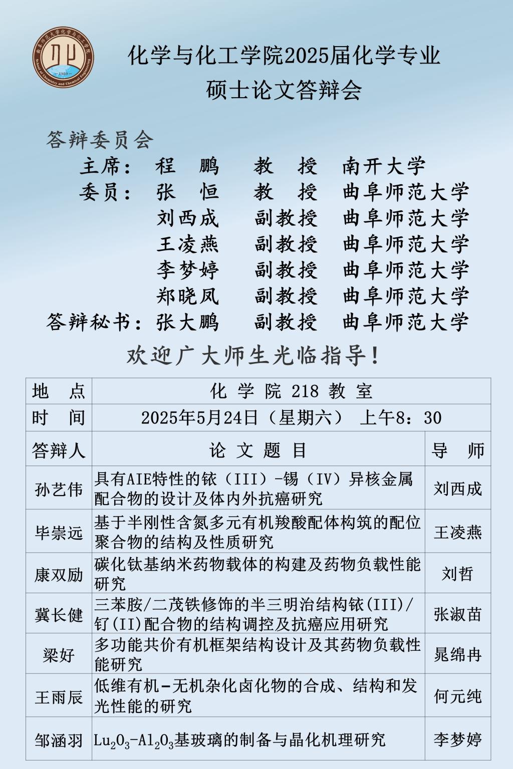 【5月24日】2025届硕士论文答辩会公告
