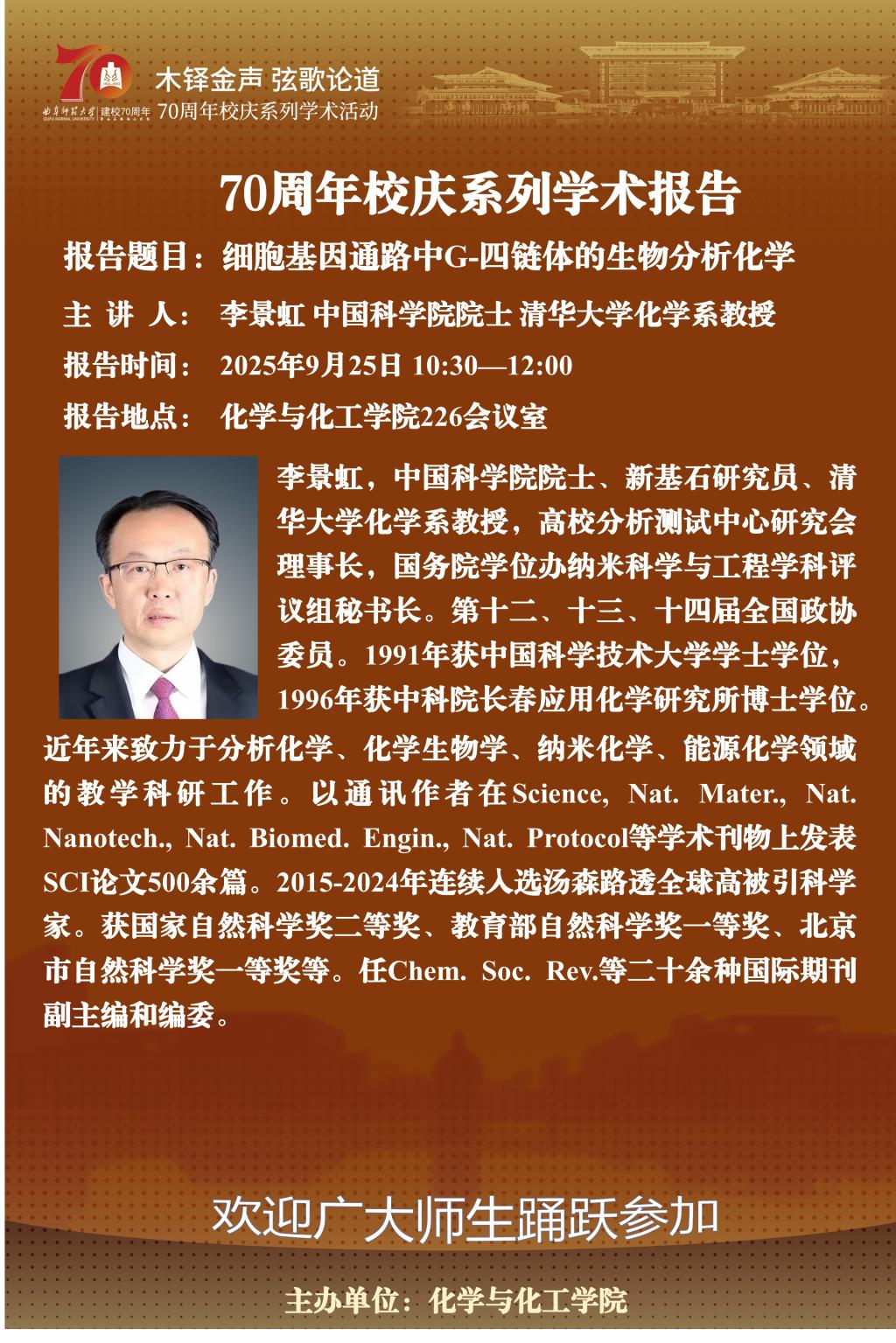 【9月25日】校庆七十周年澳博体育 系列学术报告六