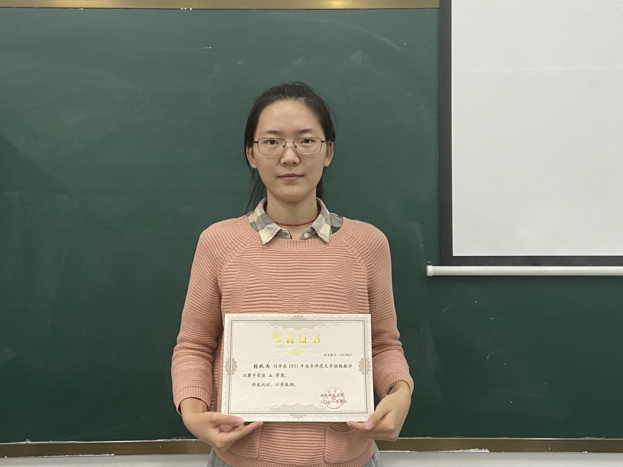 2020级教育硕士研究生张秋雨以《生活中常见的有机物——乙醇》为课题参加比赛并获得佳绩。