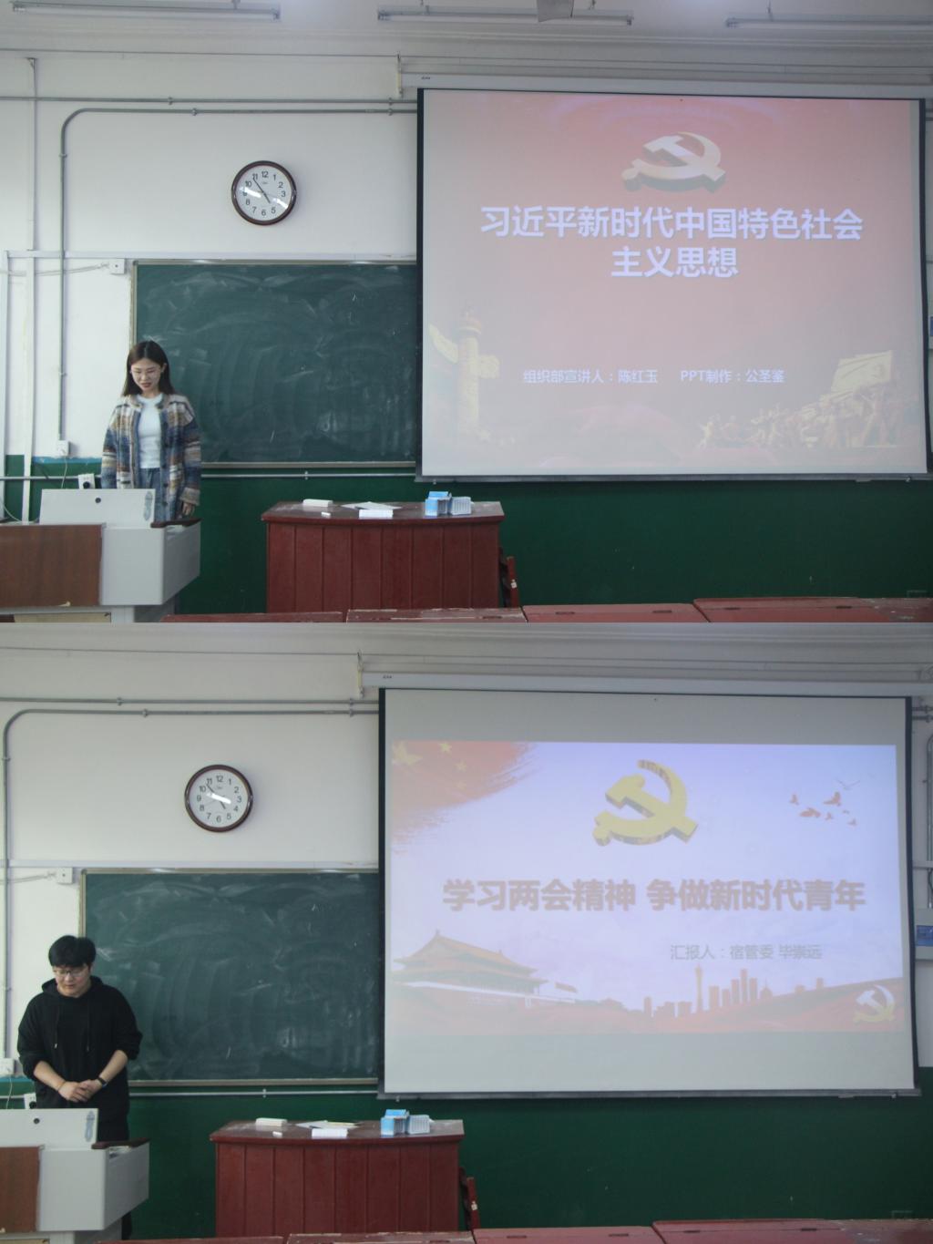 首先,主讲人毕崇远以两会介绍为引入,阐明了两会聚焦热点,带领同学们领略两会风采,呼吁同学们响应党中央的号召,为奋力谱写高质量发展时代新篇,贡献属于青春的力量,争做新时代青年。紧接着,主讲人陈红玉带领同学们分别从时代背景、创立和丰富发展、核心内容、指导地位多个方面对习近平新时代中国特色社会主义思想进行了多个角度、多个层次的学习。培训现场同学们热情高昂,掌声热烈,大家都纷纷表示学有所得,受益匪浅。