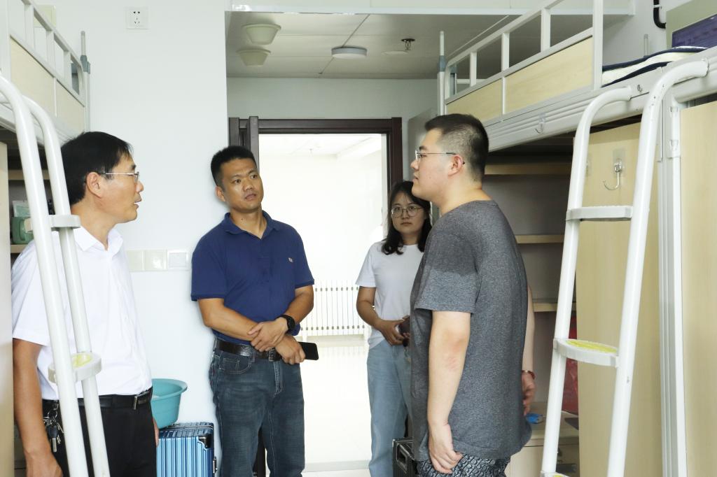 副院长李平,研究生辅导员李坤和夏玉鑫深入研究生新生宿舍进行走访。走访中,领导、老师们向新生表达了亲切问候,关心外省新生来校时交通是否顺利,耐心解答新生的疑惑,认真倾听需求,并鼓励同学们乐观面对新环境,合理规划研究生生涯,不负韶华,笃志钻研。