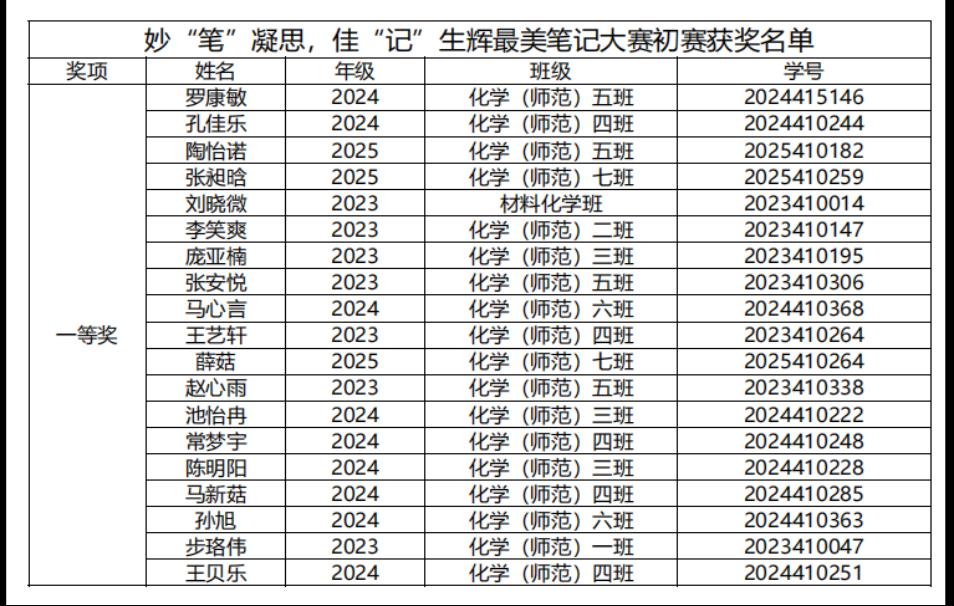 活动伊始,同学们积极报名、纷纷投稿,涌现出大量涵盖纸质与电子形式的优秀笔记。这些作品不仅内容翔实、逻辑严密,更体现了同学们对专业知识的深刻领悟,充分展现了化院学子严谨求实的治学态度与灵活高效的学习方法。经过筛选,形式新颖、内容优秀的作品脱颖而出,入围校级决赛。