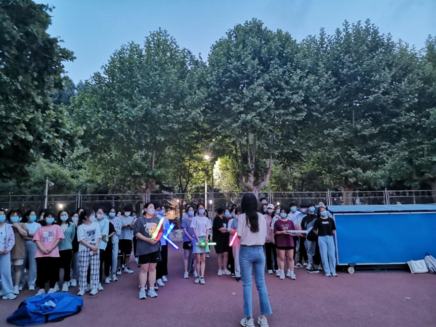 活动开始前,心理健康服务部部长袁菲向参加本次活动的同学们介绍活动的流程及规则。本次活动,每回合共四组队伍参与,共进行三个回合,每个回合每组队伍占据一条跑道。活动开始后,先由每组的两名同学手握荧光棒跑一圈, 完成第一环节“你演我猜”的游戏。接着由另外两名同学进行接力,跑步一圈之后,完成第二环节“猜字谜”。最后,由队伍中剩余的同学完成最终的接力。活动过程中,同学们手握着荧光棒,化身一只只小萤火虫,将整个操场装点成一个荧光闪耀的欢乐海洋,涌动的人群在跑道上形成了一道道亮丽的风景线,整个操场荧光闪闪,充满着欢呼与快乐。