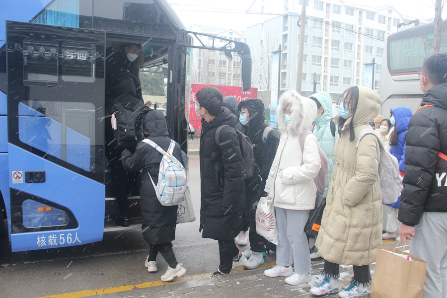 2022届考研学子于文都书院门口登车奔赴考场。澳博体育