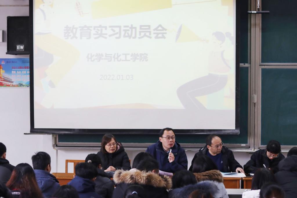 教法教研主任姬广敏细致具体地讲解了实习过程中应当注意的问题,为同学们提出了多点实习建议与指导。他强调要把握教学的重点与难点,将化学核心素养融入教学设计当中。并祝愿同学们在教育实习实践环节学有所成,学有所获。