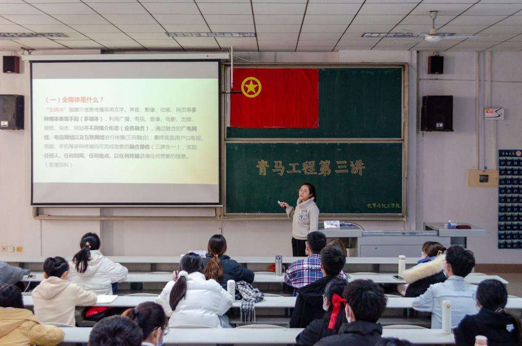 曹亚楠老师从什么是全媒体开始了今天的讲解,向学员们讲述了全媒体的含义、历程、特点及发展走向。接着,她从积极影响和消极影响两个方面说明全媒体时代到来的利与弊,介绍媒介素养的含义与重要性,并且告诉我们如何做有良好媒介素养的学生干部,提醒我们要爱党爱国、爱澳博体育