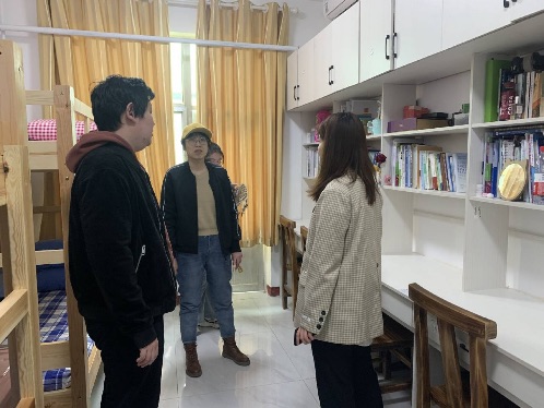 在检查过程中,检查小组就宿舍用电、宿舍卫生、违规电器等进行了全面的检查。为在疫情防控常态化背景下贯彻落实国家对于防护的相关建议,检查小组提醒同学们勤开窗常通风,注意个人卫生和公共环境卫生的保持。对于在检查过程中发现的问题,如宿舍内插排乱拉乱扯、小仓库物品摆放等问题,检查小组耐心提醒并给出意见。此次排查,大部分宿舍干净整洁,物品摆放整齐有序,且没有发现违章电器使用情况。