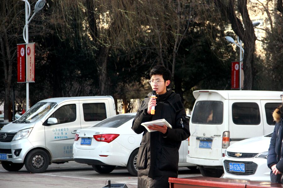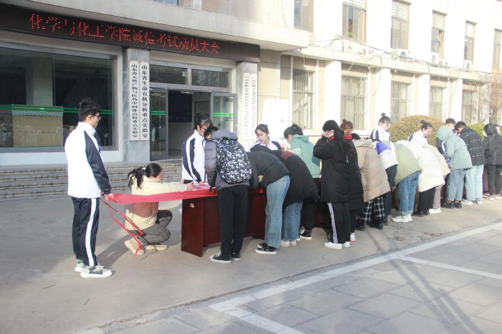 于院楼前广场举办诚信考试动员大会。出席本次大会的领导老师有党委副书记毛永正,团委书记孙金玲,辅导员毛艺霏、冯德浩、黄秉帅、蒋君。本次会议由辅导员蒋君主持。
