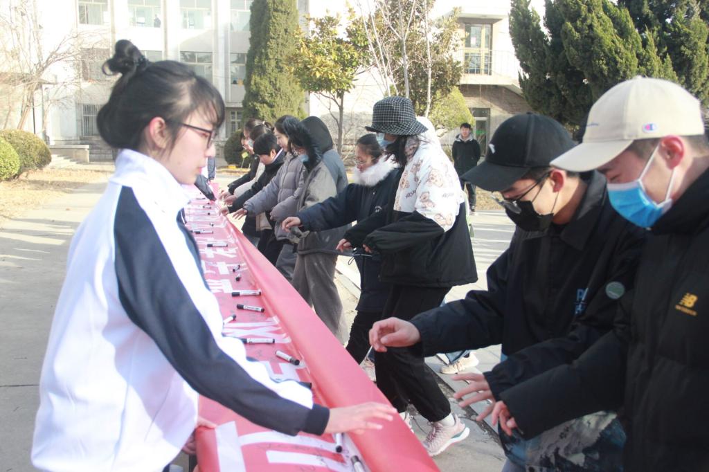会议伊始,毛永正老师致辞,他指出诚信是做人之本,当代大学生只有加强道德修养、锤炼诚信品质、积累广博知识,才能在今后激烈的社会竞争中处于不败之地。随后,学生代表辛宜蒿以“诚信应考,从我做起”为主题进行发言,他用铿锵有力的声音呼吁同学们诚信应考、杜绝作弊。最后,同学们在印有“端正考风、严守考纪、文明诚信、从我做起”的横幅上签下了自己的名字,将诚信考试的信念牢记心中。