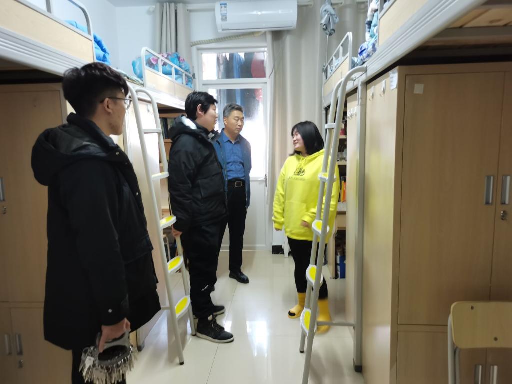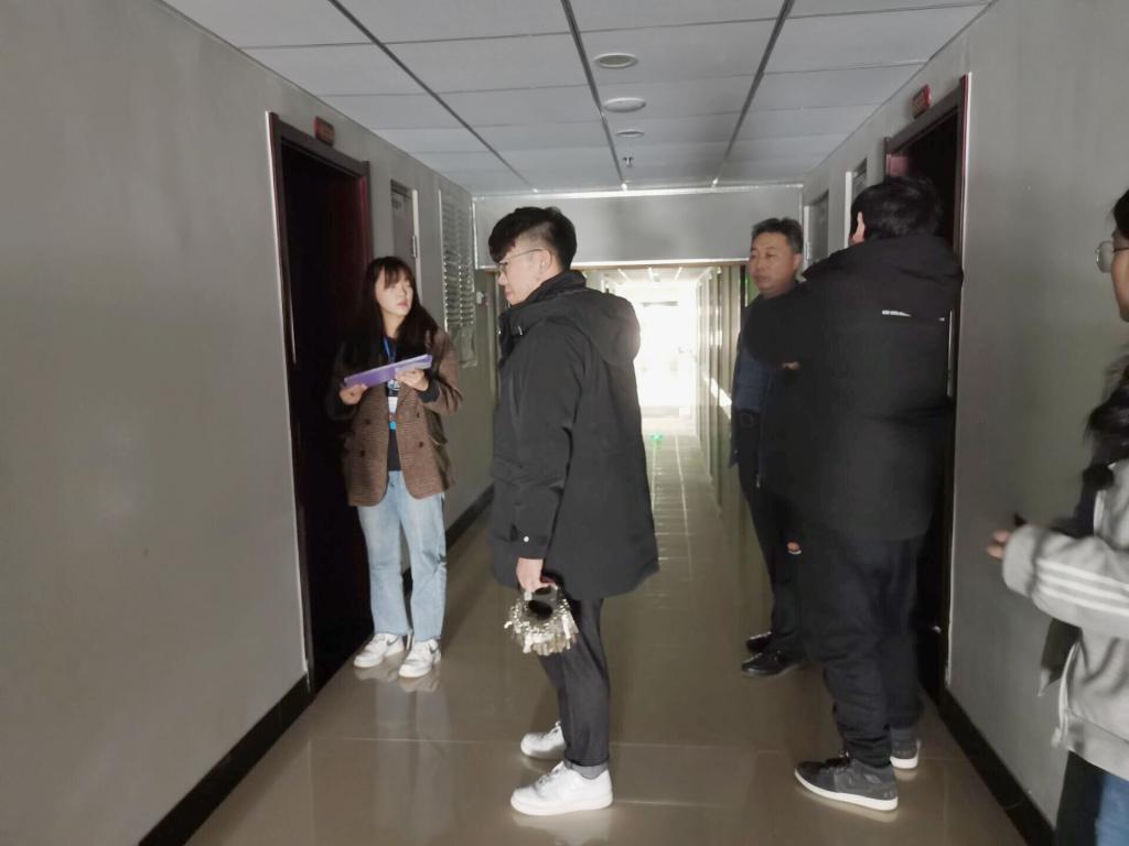 党委副书记毛永正,辅导员王亚平、冯德浩、黄秉帅、毛艺霏、蒋君带领学生会宿舍管理部成员对澳博体育