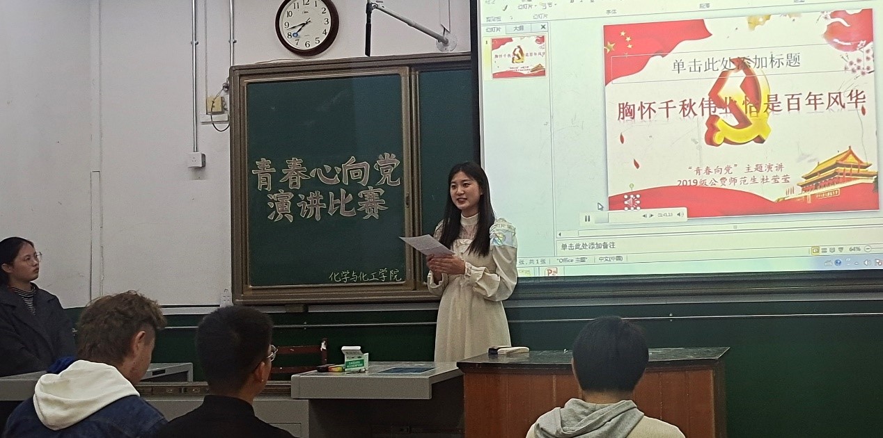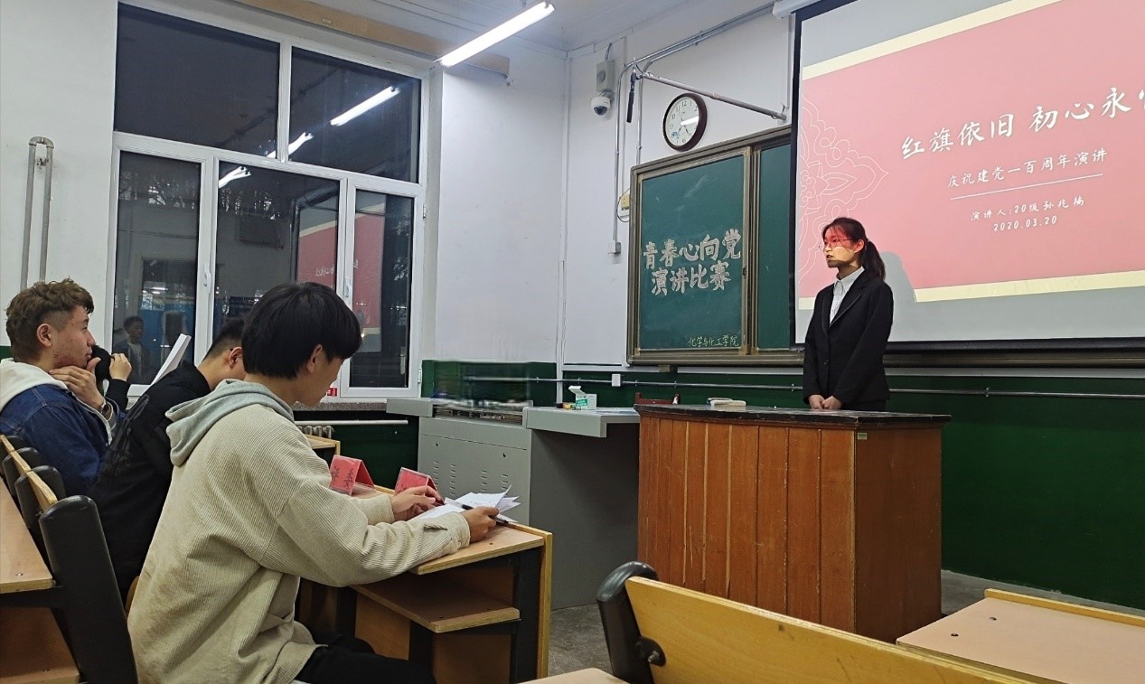 于化学楼101教室成功举办“青春心向党”大学生庆祝建党一百周年主题演讲比赛。