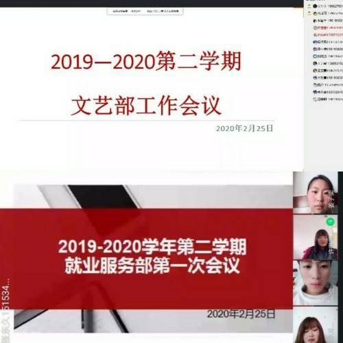 疫情防控工作,保证新学期学生工作正常开展,2月23日-2月27日,化院学生会各部门在分管主席的指导下,由部长带领部门成员采用网络会议形式对疫情期间下一步工作计划进行讨论。