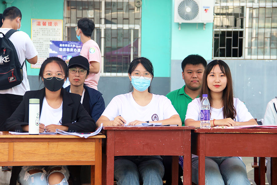 党委副书记毛永正,团委书记孙金玲,2018级辅导员冯德浩,2020级辅导员蒋君、毛艺霏莅临指导学生的迎新工作。