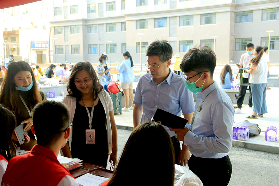 党委书记赵琪,团委书记孙金玲,2020级辅导员蒋君、毛艺霏亲临学生公寓视察,指导新生安顿工作。