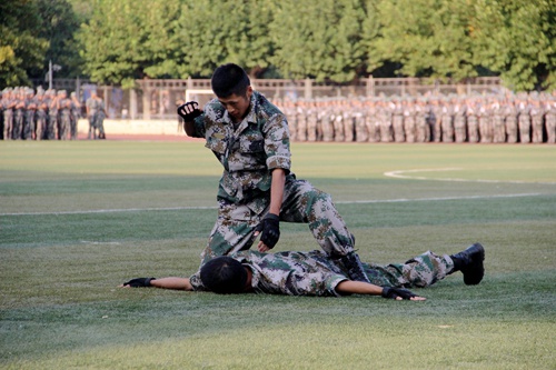 大会伊始,跑步连、擒敌拳方队、应急棍术方队等七个方队依次进行成果展示。齐步跑步连的英姿飒爽,擒敌拳、应急棍术连的干脆利落,定向越野连的健步如飞,引发了全体观众的热情。紧接着,军训教官带来的表演更是将全场气氛推向高潮,教官们飒爽的英姿、出色的表演、有力的口号不断赢得全场的掌声和欢呼声。军训期间,澳博体育