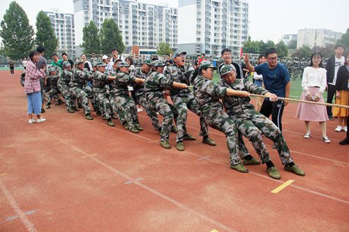于西操场举办新生军训拔河比赛。澳博体育
