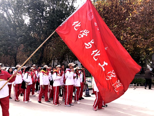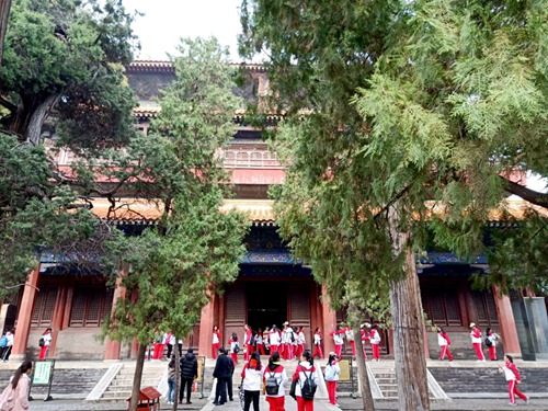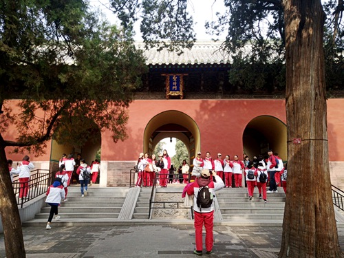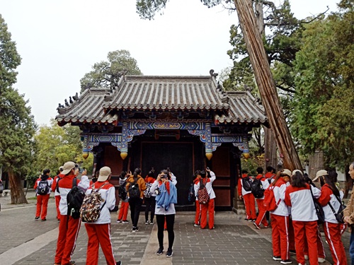 墨子像前集合,在辅导员冯德浩、学生会主席宋成凯的带领下前往参观三孔景区。