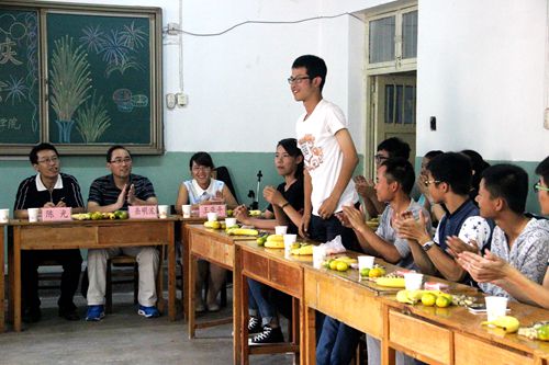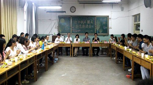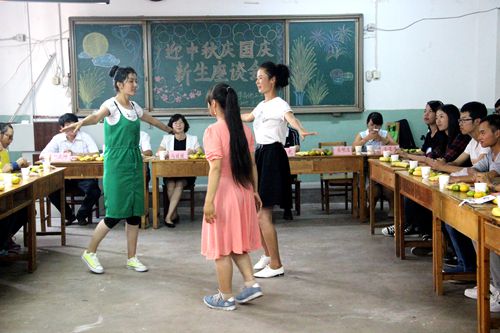 取得的成绩,并给大家送去了节日的祝福。师生围坐在一起聊天,冯媛媛老师指出大学要以学业为重,要求同学们无论做什么事都要把学习放在第一位;岳明波老师建议同学们劳逸结合,多参加体育运动,强身健体;陈光老师建议同学们要树立远大的目标,并为之努力奋斗。三位老师都谈到了自己的大学生活,希望同学们能从中吸取经验,以较好的状态投入到大学生活中。领导老师们与新生的谈话将座谈会的气氛推向最高潮。随后新生进行自我介绍,大家相互了解,师生有说有笑其乐融融。最后,文艺部为大家带来精彩的表演节目,来自新疆的三位新生为大家带来的新疆舞蹈得到大家的一致称赞……欢声笑语中,2015级“迎中秋,庆国庆”新生座谈会落下帷幕。