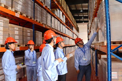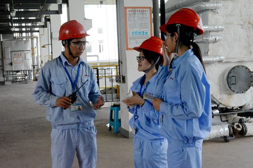 7月13日,继参观360车间之后,全体实践队员再次深入220车间(颜料生产制备车间),期间学习了解了精馏塔分离物质的流程,观察了先尼科公司自动半自动的操作装置,阀门开度以及压力的操控。仪器的精致让队员们深深叹服科技的力量,员工认真的态度也让队员们肃然起敬。