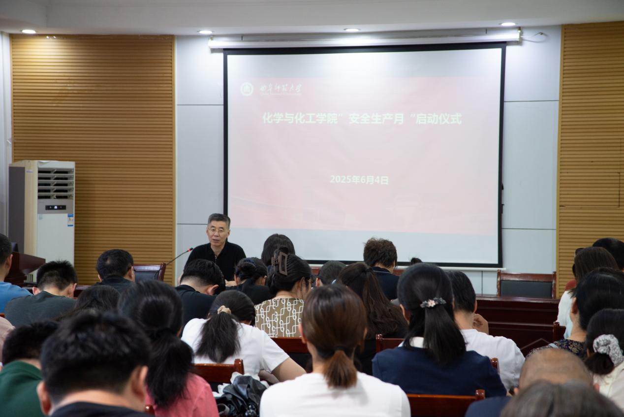 事业发展的底线和红线,化学学科具有实验性强、涉及危险化学品多等特点,安全生产工作尤为重要。他指出,开展“安全生产月”活动,是贯彻落实上级安全生产决策部署的重要举措,是提升师生安全素养、防范安全事故的有效途径。随后,教师和学生代表共同观看了《安全生产月公益视频》。
