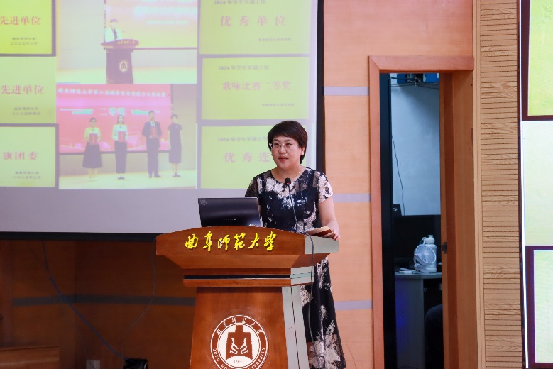 图为党委副书记孙金玲介绍澳博体育 学团工作情况