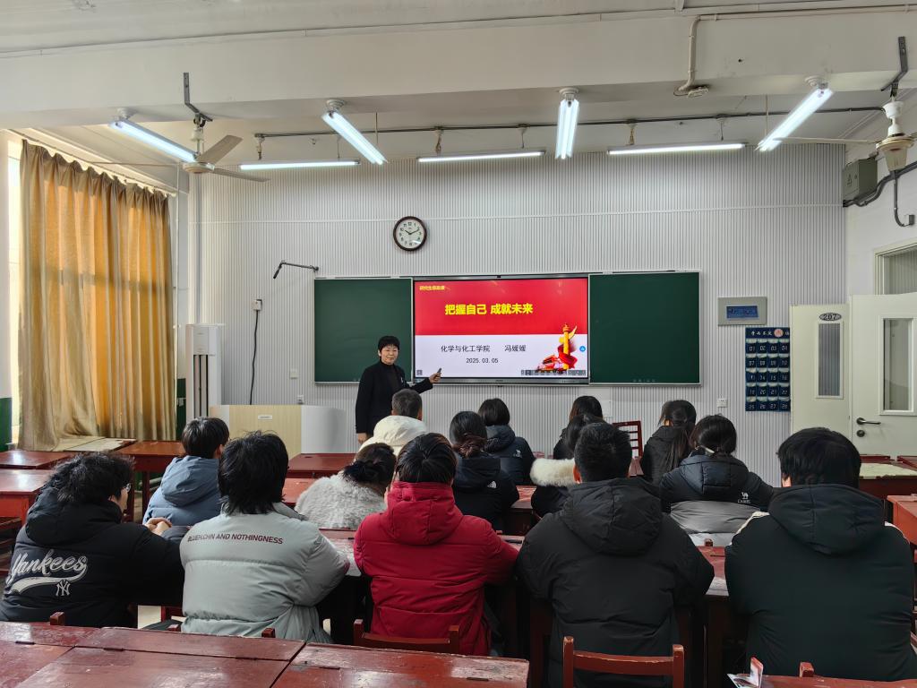 在课堂上,冯媛媛院长首先结合物理化学学科的特点与发展趋势,指出当代研究生正处于科技飞速发展、创新浪潮澎湃的伟大时代。物理化学作为基础学科与前沿交叉领域的重要支撑,在国家能源、环境、材料、健康等关键领域中发挥着不可替代的作用。同学们选择这一专业,既是对科学真理的追求,也意味着肩负起推动学科发展、服务国家战略需求的责任。