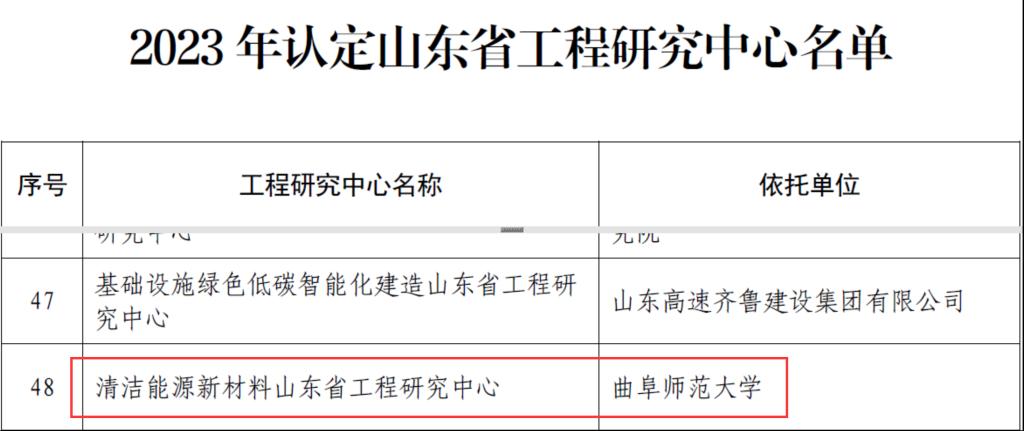与山东圣阳电源股份有限公司联合申报的“清洁能源新材料山东省工程研究中心”成功入选,这是继山东省“催化转化与清洁能源”高等澳博体育