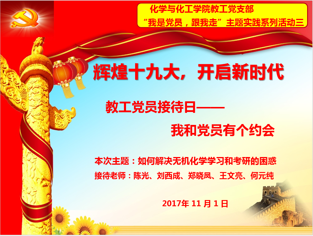 教工党支部成功开展了第三期“我是党员,跟我走”主题实践系列活动——教工党员接待日。本次活动主题为“如何解决无机化学学习和考研的困惑”,无机化学教研室党员教师为化澳博体育