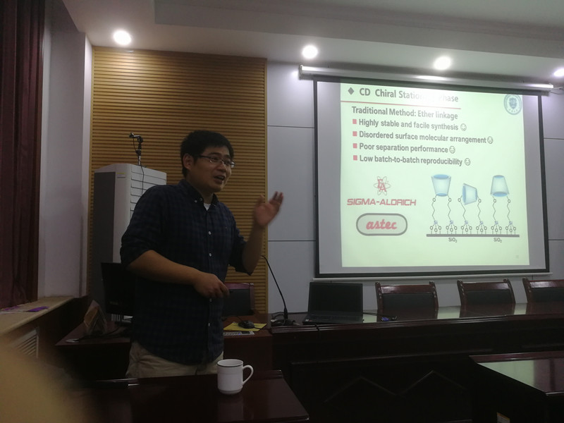 本次论坛邀请到天津大学王勇教授。王教授作了题为“环糊“精”手性分离与识别”的精彩报告。报告中,王教授介绍了天津大学的发展历史,分享了自己从事科学研究的经历,并对环糊精分子的前沿领域和进展进行了深入剖析,提出了许多独到的见解,鼓励师生做科研要有恒心和毅力。最后,王教授用“仰望星空,脚踏实地,持之以恒”与师生共勉。在师生互动环节,王教授认真细心地回答了师生的问题,为以后科研工作的开展提供了许多启发性的线索。