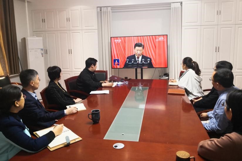 209会议室和226会议室集中收听收看开幕会,其他师生以不同形式收听收看开幕会,认真聆听习近平总书记的报告,现场气氛热烈。