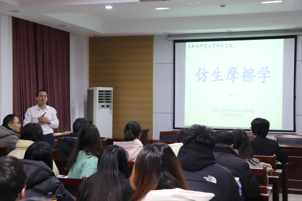郭志光教授是仿生功能材料领域的知名专家,研究涉及材料科学的多个前沿领域,包括但不限于仿生摩擦学材料的设计、制备及其应用。在本次报告中,郭教授分享了他在仿生功能材料领域的最新研究成果,并对材料的未来发展进行了深入的探讨和展望。报告会现场学术氛围浓厚。在互动环节,师生们积极提问,与郭教授就仿生功能材料的科学问题和技术挑战进行了热烈讨论。