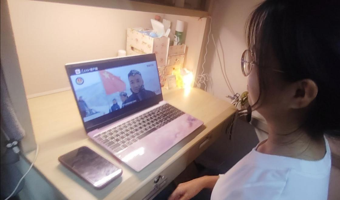 图为学生观看“同上一堂国家安全思政大课”