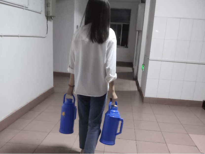 图为团支书高媛媛去给班内同学接热水