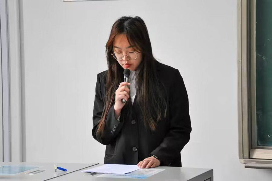 图为2022届学生会主席王楠作《2022届学生会工作报告》