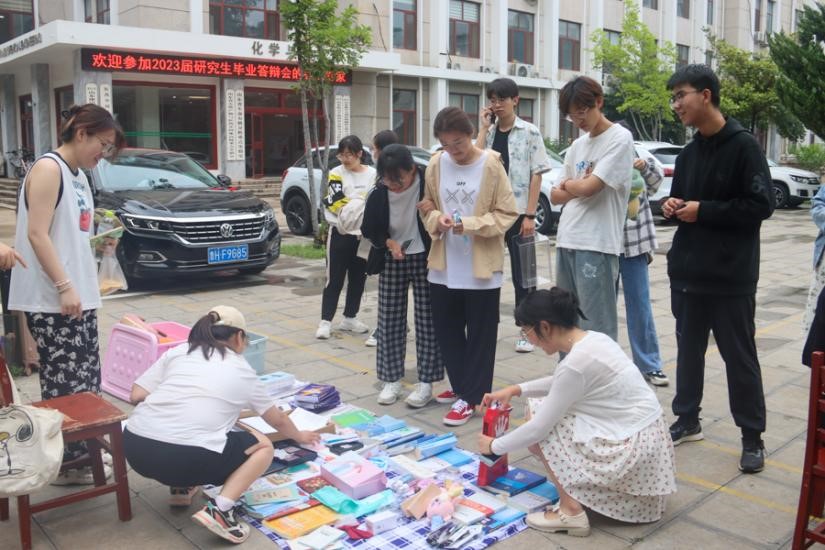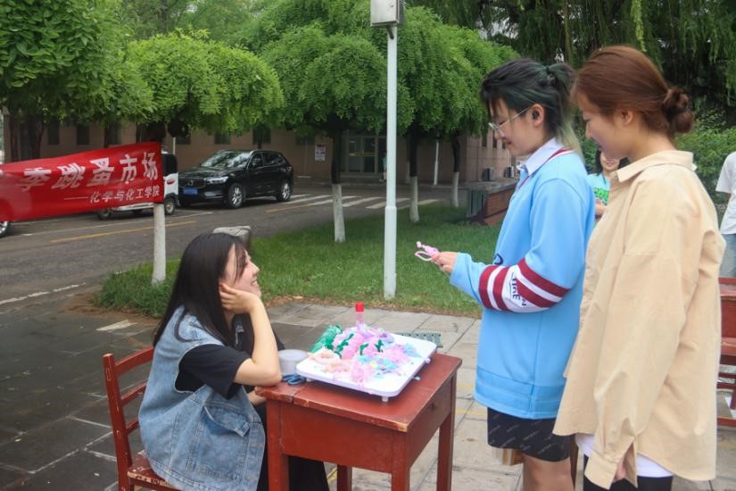 天气的湿冷并未浇灭大家的热情,卖家摊主和青年实践部的干事们一起布置场地,摊位摆满了整个化院小广场,洋溢着欢乐热闹的气氛。卖家摊主拿出闲置物品进行自由买卖,吸引着有需要的同学前来选购。