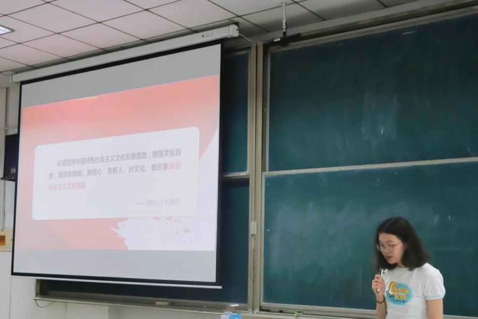 班会伊始,李文静以“凝心聚力、启智铸魂——从儒家文化中汲取心理智慧、涵育时代青年”为主题,运用实际案例绘声绘色地讲述了儒家文化涵养健康心态的积极意义和内在机理,以及当代大学生如何从儒家文化中汲取心理智慧,争做优秀时代青年。随后,学生干部孙荥从文化自信角度进行了理论宣讲,呼吁研究生要加强理论学习,推动中华优秀传统文化创造性转化、创新性发展,进而提高国家文化软实力,敦促我们要坚定文化自信、勇担青年使命。班会现场,同学们积极发言,热烈讨论,纷纷表示深受触动,受益颇多。