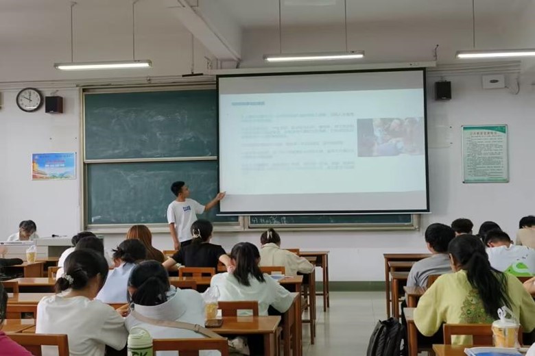 图为宣讲人正在宣讲安全技能相关知识