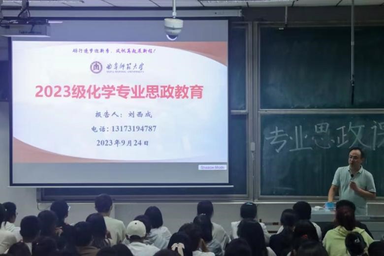 9月24日晚邀请刘西成老师、张兆顺老师、白啸老师、闫克鲁老师分别为化学(师范)专业、化学工程与工艺专业、材料化学专业、制药工程专业分专业的新生开展专业思政课堂,2023级全体学生参加本次活动。