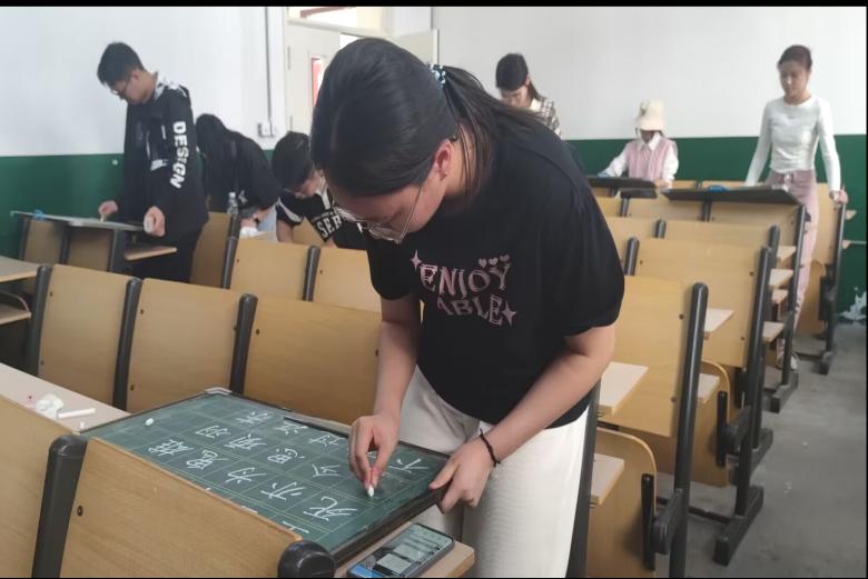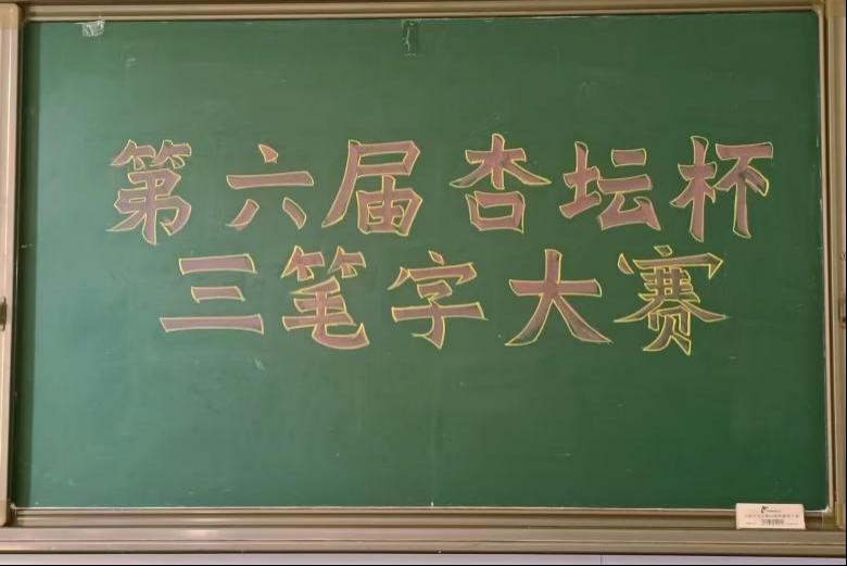 图为第六届杏坛杯三笔字粉笔字比赛现场