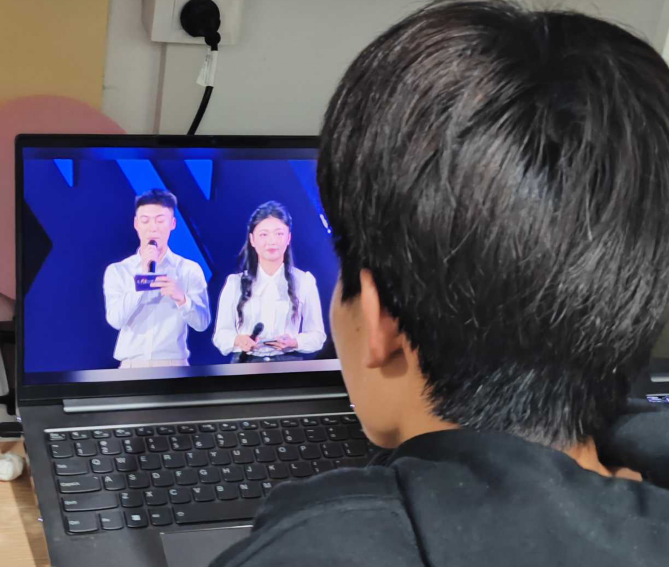 图为同学们观看直播图片