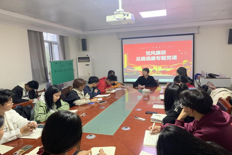 于11月22日在化学楼218会议室召开““廉洁”守初心,护航人生路”廉洁思政课。本次思政课由2023级辅导员黄秉帅主讲,2023级全体学生干部参加。