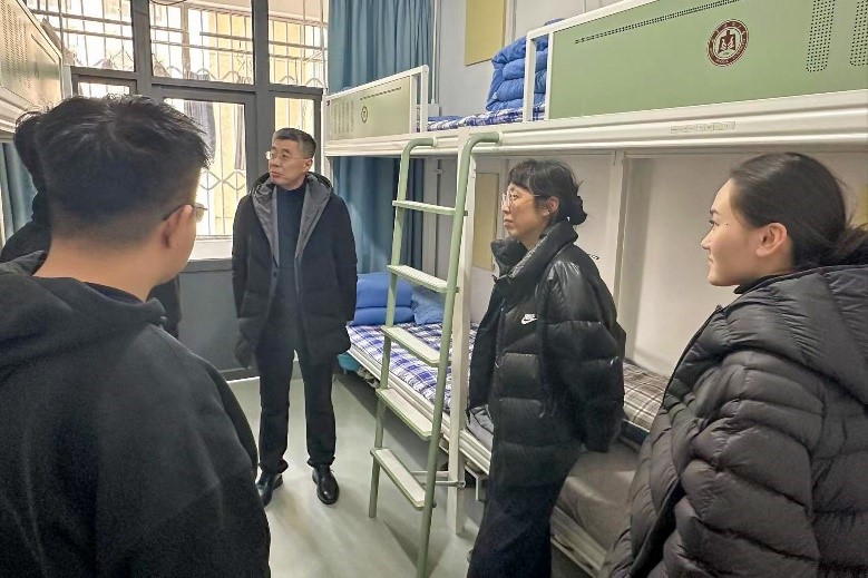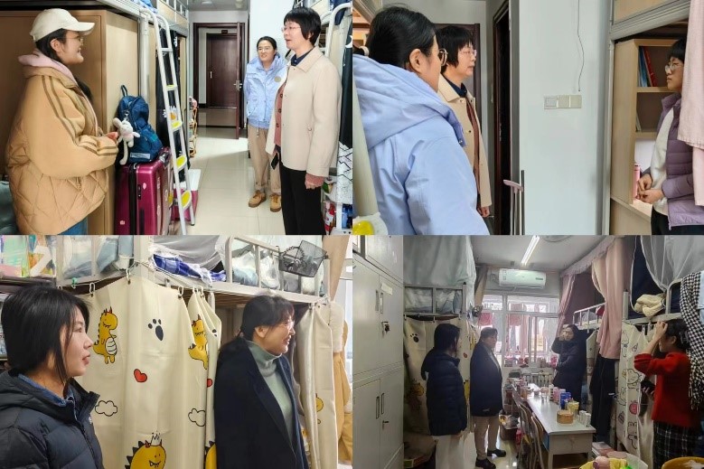 党委书记赵琪,院长冯媛媛,党委副书记孙金玲,副院长李平、刘鹏,团委书记王亚平以及全体辅导员老师一同前往宿舍进行走访。