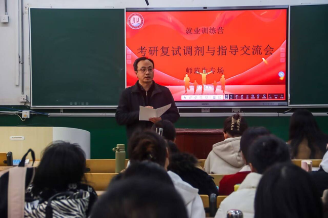 于3月20日下午开展了考研复试调剂与指导交流会。本次交流会由曾川老师主持,刘西成、朱霄两位老师为同学们做复试指导。