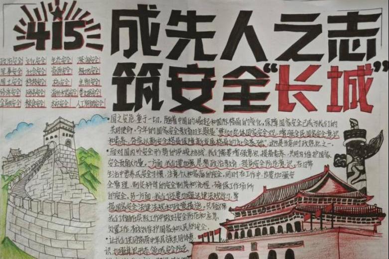 同学们积极参加此次活动,参赛者以“承先人之志,筑安全‘长城'”为主题并制作手抄报。手抄报内容以总体国家安全观为指导,以增强学生国防安全意识和素养为目的,进一步激发学生内心爱国主义热情和维护国家安全的责任感和使命感,充分发挥青年力量。