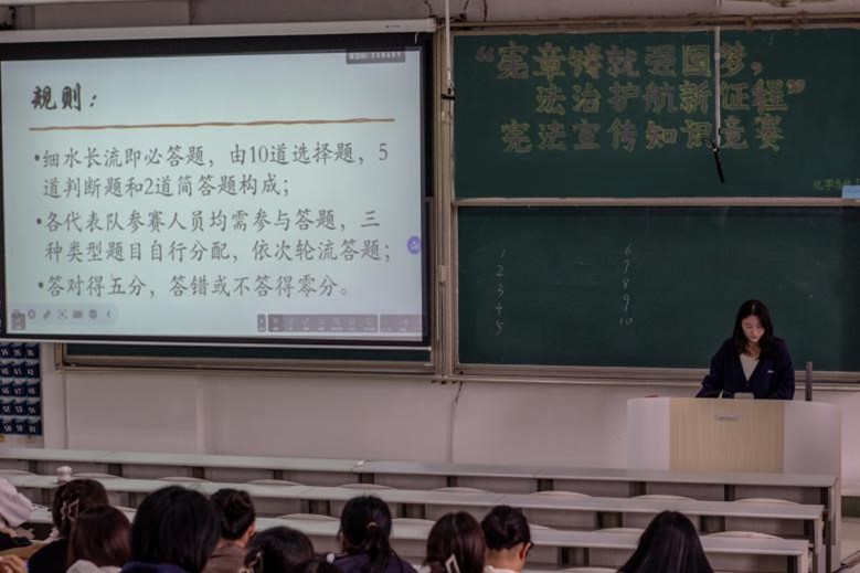 本次活动以“宪章铸就强国梦,法治护航新征程”为主题,通过宪法知识答题、趣味活动、分享参赛心得等形式展开,同学们的积极参加,参赛氛围格外活跃。在心得分享时,每组同学都表示对宪法知识有了更加深入的认识,同时也明白了宪法在日常生活中的重要性。
