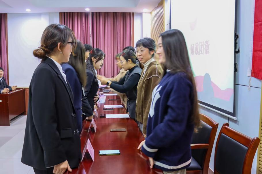 党委副书记孙金玲、团委书记王亚平、辅导员冯德浩、黄秉帅、孙兰馨、团委副书记杨静琪、孙申出席仪式,参加本次仪式的还有2024年新发展团员以及部分团员代表,仪式由杨静琪主持。